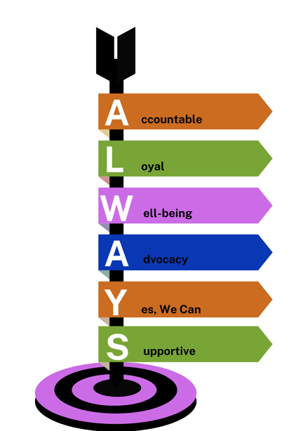 At Conze Disability Support Services, we stand out by putting our values into action—ALWAYS: Accountability, Loyalty, Well-being, Advocacy, Yes We Can, and Supportive care.